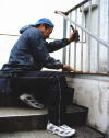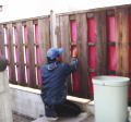 |  |  |  | 2/5/’08 ・外部塗装工事。塗装し易いように木塀にペーパーを かけたり、スチール手摺の錆を落としたりの前段階。 ・LGSだった下がり壁にプラスターボードが貼られました。 ここは左官仕上げ・・・と言いたいところだけれど、 予算がないのでクロス仕上げ。 | ||