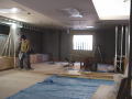 |  |  | 1/25/’08 ・喫茶室のキッチンカウンターができつつあります。 ここは以前は厨房だったので、床は配管まる出し の コンクリート床でした。 ・LGS(軽量鉄骨下地)で展示室、展示台の下り壁 を作っています。 ・オーナーを交えて、色決め等。いよいよ終盤です。 | |||