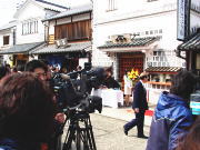 |    | 受付風景 ・・この頃星野監督は、記念館内部で 各テレビ局の取材を受けていました。 関係者しか入れないので、路上に見物人が いっぱい! 水島灘源平太鼓の演奏で活気付け | ||||