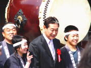 |    | 源平太鼓の皆さんといっしょに記念撮影 白手袋をはめて、いよいよ。 | ||||
