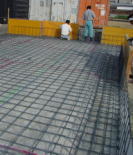 10/22/’10 配筋検査 ・13φの鉄筋が200mmピッチで、配筋されているか どうかを検査します。 ・鉄筋の継ぎ手長さ、13φ×40倍=520_を検査 します。 |