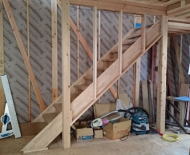 11/05/'15 ・階段ができました。 図面片手に 梯子を上らなくて よくなりました。 階段の蹴上178ミリ、踏面257ミリ、 年をとっても 楽々上がり降りできる やさしい階段です。 ・薪ストーブがある 玄関土間です。 2階の部屋内の窓からも 見下ろすことができます。 1階にいれば 2階の様子もわかる、そんな空間です。 ・外壁に 下地モルタルが塗られました。 この後塗装をすると 家のイメージがガラッと変わります。 |