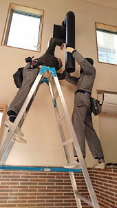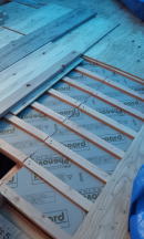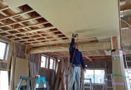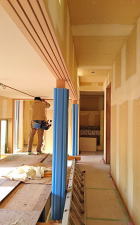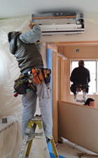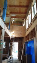 9/19/'15 ・2階の洗面コーナーの納まりが 難しいと 急遽 現場から 呼び出しです。 図面を描いている時から、この部分は大変と思っていた ら、 案の定でした。 臨機応変に 少々変更して 無事 クリアできました。 ・今日も頑張ってくれています。 板金屋さん♪ ・2階のベランダ いい感じに形ができています。 ・天井下地の野縁がほとんど 仕上がっています。 隠れてしまう部分ですが、これはこれで すごくきれい なんです。 |