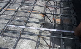 7/16/'15 配筋検査 ・主筋の径 D13 が 200mmピッチで 配筋されているか、 鉄筋の継手長さ 13φ×40倍になっているか チェックします。 |