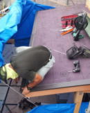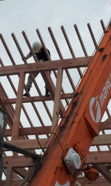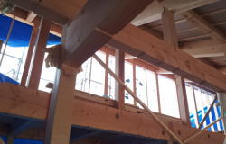 8/12/'15 ・耐力壁のチェックです。写真は スジカイのタスキ掛け です。耐力壁の計算をして、場所や数等を決めます。 ・屋根の上の板金屋さん。 彼のお父さんの頃から、 現場はよく施工してもらっていました。とても腕のいい 職人さんです。親子代々 お世話になります。 ・お決まりの・・・ 屋根の上から 失礼します♪ |