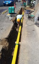 8/3/'15 ・上部 ロフトです。 子ども室は北側にありますが、 このロフトから 子ども室に南の光が入る工夫を しています。 ・2階ベランダの床。 断熱材を充填しました。 ・なぜか この一角だけ 都市ガスが来ていません でしたが、 何とか 工事が始まりました。 |