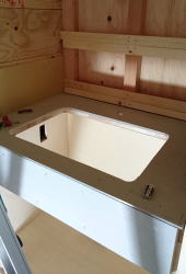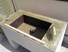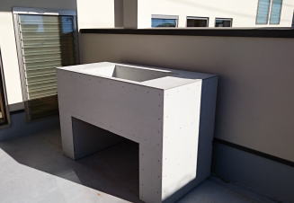 12/27/'15 日曜日。 きっと 現場は動いているんだろうと 覗いてみました。 大工さん二人と 左官屋さんが 頑張ってくれていました。 ・和室の鴨居です。 柱を建てずに 広い開口です。 ・2階ベランダの流しコーナーです。 耐水ベニヤで下地を作り、FRPで防水して、タイルを 貼ります。 ここで バーベキュー♪ です。 |