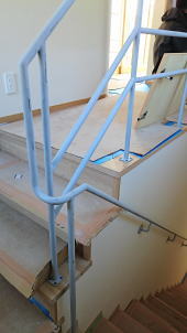 1/20/'16 ・薪ストーブは最後の仕上げとなりました。煙突取付中です。 薪ストーブの後ろの壁はRC造なので、熱にも大丈夫です。 23日、見学会の日、火入れとなります。 ・階段手摺はアイアンロートで制作しています。 壁が立ち上がらないので、透け感があります。 これから 塗装します。 ・ポーチ周りも 最後の仕上げです。 玄関ポーチからつながる部分は すべて 洗い出しです。 庭部分は 今回 車3台分の駐車場となります。 駐車場は土色の味わいのある色で 仕上がる予定です。 |
