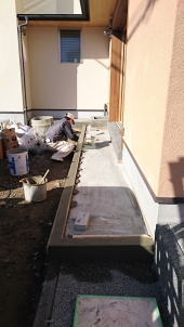 12/30/'15 現場は今日が仕事納めです。 ぎりぎりまで ありがとうございました。 たくさんの人たちの協力を得て 家が完成していくことに いつもいつも 感謝の気持ちでいっぱいです。 ・いよいよ土間の洗い出しです。 ・土間の掃出し部分です。アルミサッシではなく、 木製の障子・ガラス戸・網戸が入ります。 ・玄関ポーチの洗い出しです。 |