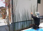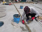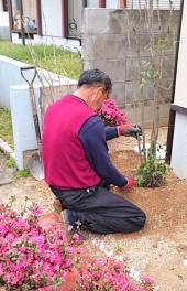 4/11/2016 作 庭 : 福田義勝氏 ・駐車場 完成です。 ただ今。 養生中。 ・トクサを植える 福田氏。 既に 顔は真っ黒ですが、 それでも お肌に悪いので 帽子。 ・福田師匠の手にかかれば、植物が居場所を得るのです。 |