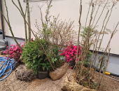 3/31/2016 作 庭 : 福田義勝氏 ・お引渡しをして 随分経ちましたが、やっと 庭の工事が 始まります。 建て替え工事だったので、大事にされていた樹木は 福田氏に 預かってもらっていました。 オリーブ、紅葉、南天 の3本の木が 帰ってきました。 オリーブは ちと雰囲気が合わないので、お仕事場に 植えることになりました。 お待たせした分、 福田さんが きっと 何倍も頑張って くださると思います♪ |
