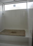 10/11/’11 ・トイレの手洗いカウンターはガラスモザイクタイル貼りです。 手洗い器もガラス作家有松氏作です。 ・浴室はユニットバスではなく、在来工法でタイルを貼って 作っています。タイル、浴槽とも清潔感あふれる白です。 天井は左官仕上げ、カルクウォール。 |