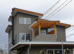 10/21/’11 ・塗装工事が次々と進められていきます。 吹き抜け周りの丸鋼の手摺りをペンキ塗装している ところです。 ・2階の洗濯物干しテラスです。屋根はガラスなので、雨に 濡れないし、よく乾くと思います。 ・母屋の門あたりから見上げ姿です。 自分で言うのもなんですが・・・いい姿をしていると思います。 |