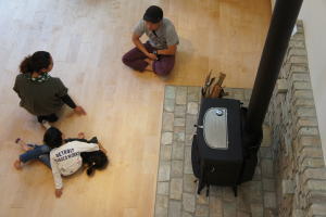 | 中庭のハンモック 本日、薪ストーブの火入れ式 道路側から見た中庭 | |||||