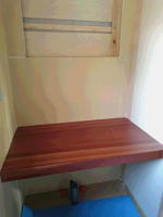 9/28/'15 お引渡し ・施主支給品の照明器具を取付中。 お引渡しと言っても ちょこちょこと 残っています。 ・花梨の一枚もののカウンターの上に 洗面器を乗せた だけの シンプルな 洗面カウンターになりました。 ・“ こはち ” は この場所から ずっと 現場監督サンを してくれました。 今度 来るときには こはち部屋にいる “こはち” を 見たいと思います。 “ こはち ” サン 満足度 何パーセントでしょうか! |
