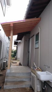 10/17/2017 ・洗面脱衣室です。 朝の慌ただしい時間に 二人同時に使える洗面台 です。 カウンターの左は 下着類が入る 人数分の 収納引出です。 ・ウッドデッキが完成しました。 かなり広いので ご家族みんなで楽しめる場所に なると思います。 ・キッチン後ろのカウンター収納。 一番左は 電気釜収納、一番右は ゴミ収納です。 ・キッチンそばの食品庫です。 2.5帖ですが、立体的に使用すれば かなりの 量が収納できます。 ・勝手口の屋根も施工終了。 |